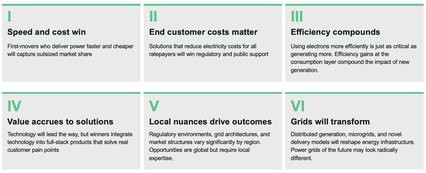 In this environment, we believe the companies that will create the most value are those that can deliver power faster, cheaper, and more efficiently, while navigating the complex local realities of energy markets around the world. The six principles that follow are our guide to finding them.